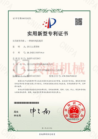 一種鋼絲繩防脫罩-實(shí)用新型專利證書