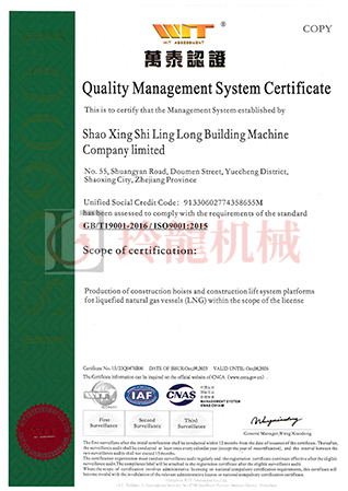 SCPT-400液化天燃?xì)獯↙NG)施工升降系統(tǒng)平臺(tái)新產(chǎn)品評(píng)價(jià)證書